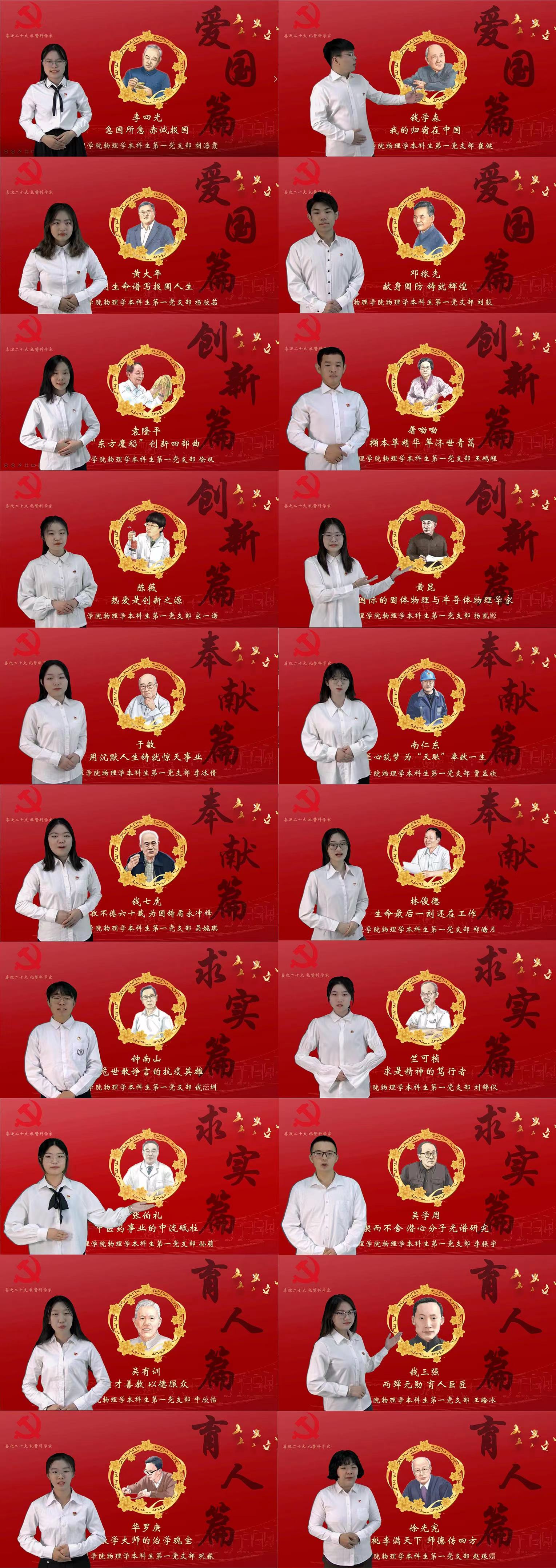 学院党委副书记赵晓艳表示,党员们分20天用20个科学家故事诠释爱国、创新、求实、奉献、协同、育人的科学家精神,以科学家精神激励和引导物理学子坚定信念,追求真理,勇攀高峰,以优异成绩迎接党的二十大胜利召开。