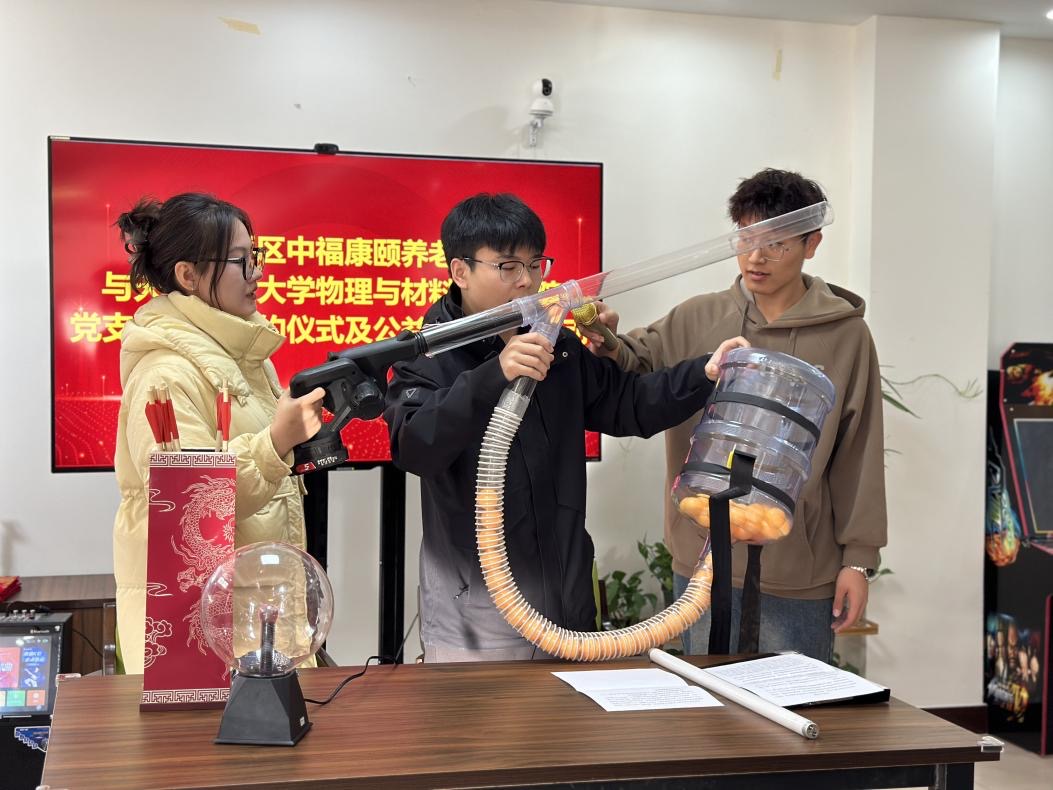 签约仪式上,德赢ac米兰官方合作党委书记张伟介绍了物理学本科生第一党支部建设情况,特别是支部党员始终紧紧围绕科普宣传这一核心特色,凭借扎实的专业知识,精心谋划并踊跃开展了一系列形式多样、内容丰富的支部活动。他希望,支部党员在共建活动期间,支部党员要将科学知识与物理实验有机融合,致力于锻炼老年人的思维敏捷性与动手实践能力,并通过这种方式,帮助老年人提升认知水平,有效预防各类认知障碍类疾病的侵袭,提高晚年生活质量,为构建健康、活力、智慧的老年群体贡献力量。