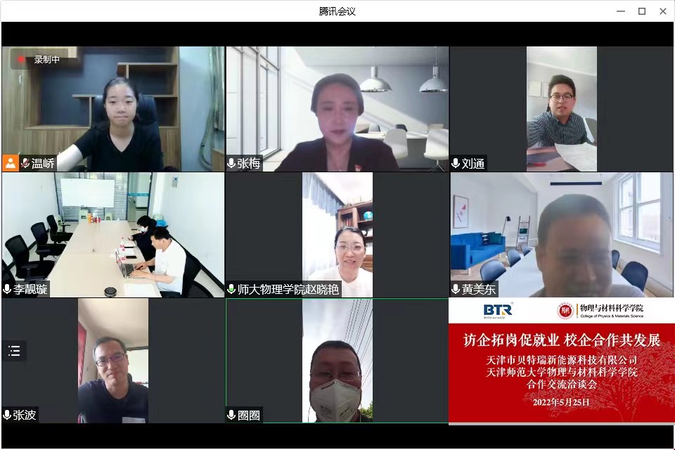 5月25日下午,德赢ac米兰官方合作和天津市贝特瑞新能源科技有限公司在线上举行了“访企拓岗促就业 校企合作共发展”合作交流洽谈会。学院领导班子、天津市贝特瑞新能源科技有限公司人事部门和研发部门负责同志以及部分师生代表参加活动。
