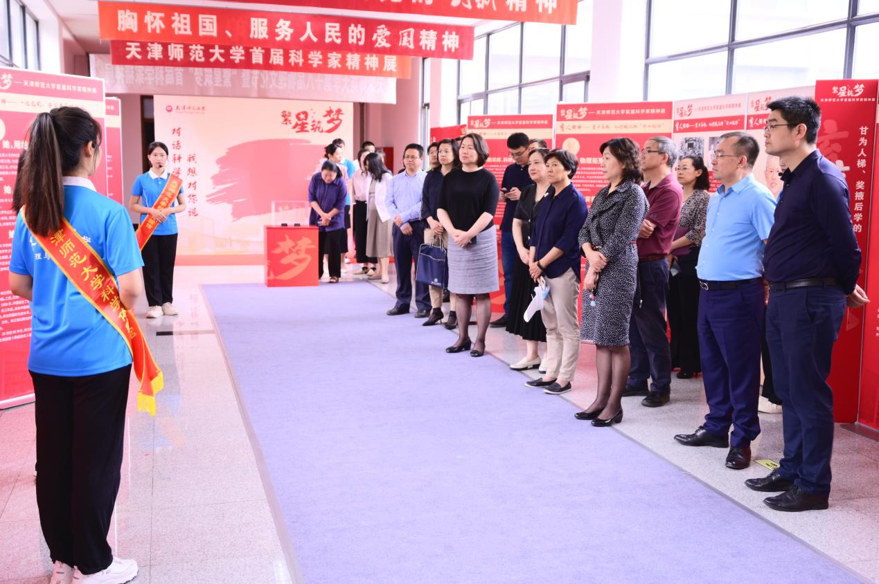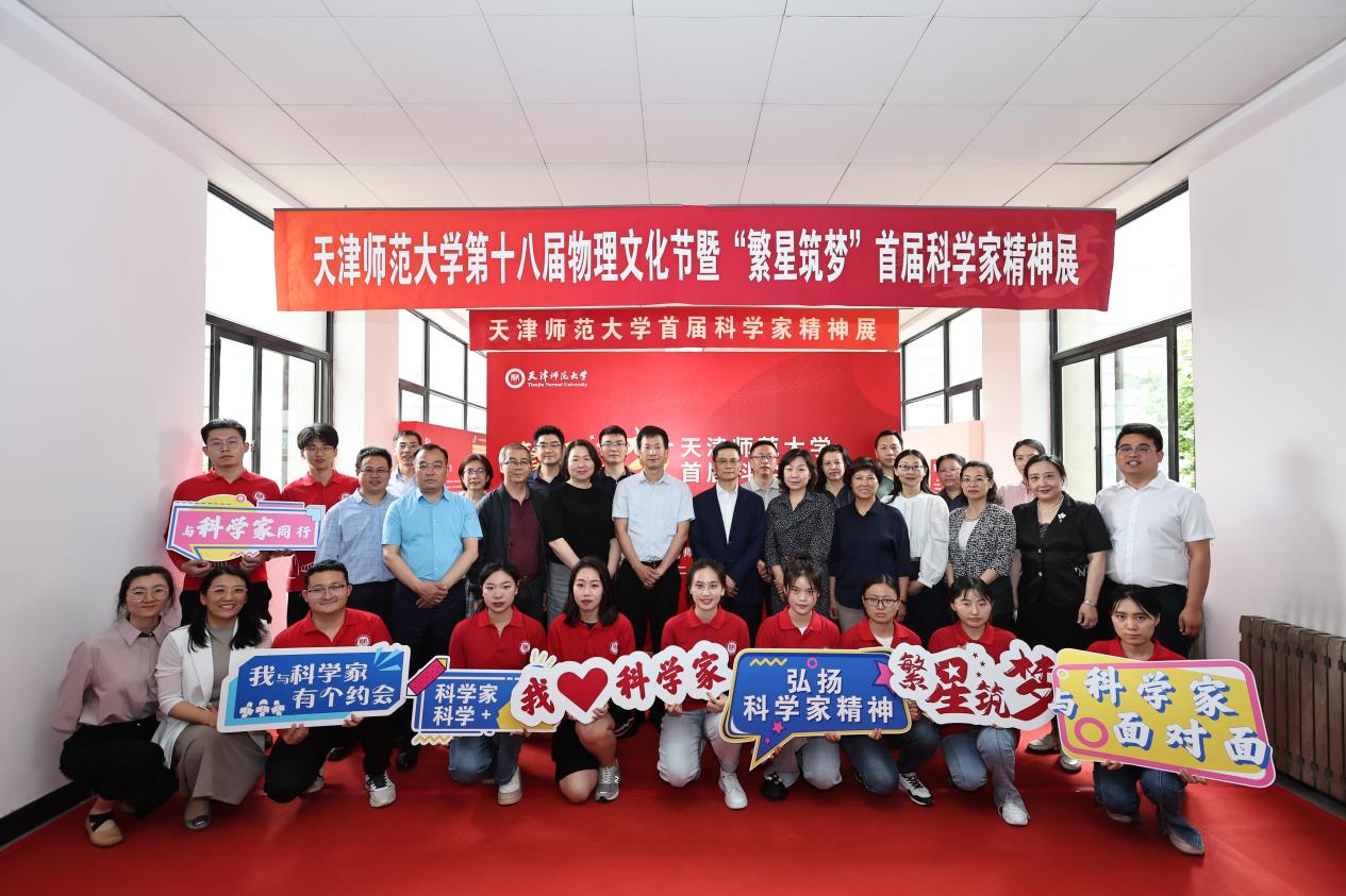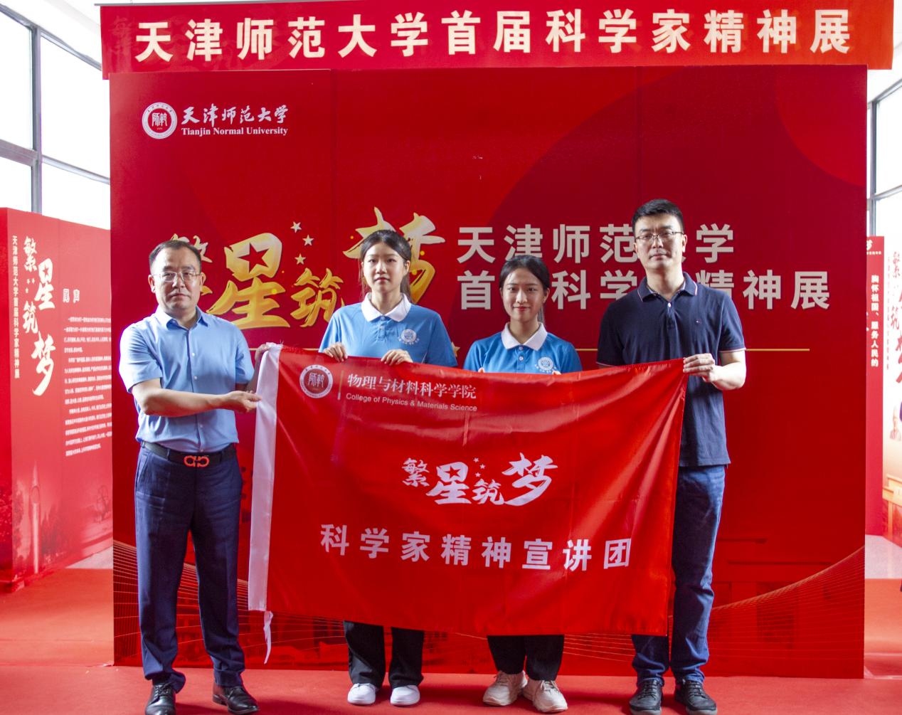 出席嘉宾为第十八届物理文化节暨“繁星筑梦”首届科学家精神展揭幕,并为科学家精神宣讲团队授旗。第八届天津市科普讲解大赛中“天津市十佳科普使者”林慧玲、优秀奖获得者边浦钰作为宣讲团代表接旗。