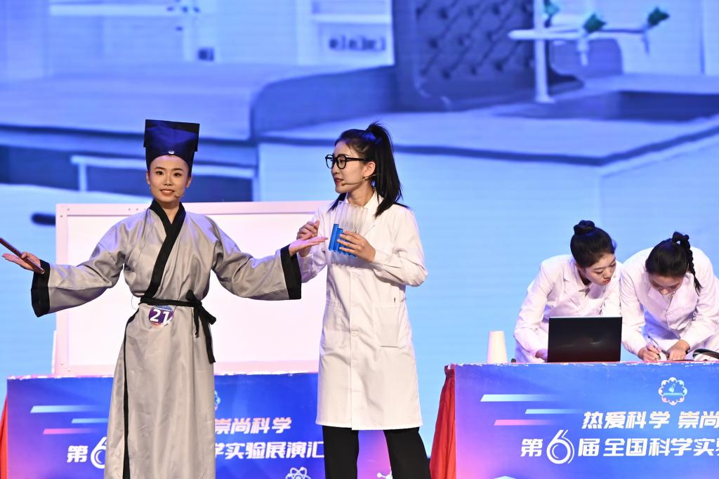 德赢ac米兰官方合作自2023年4月起开始组队筹备,带领学生通过自制实验器材、情景展示,巧妙地利用常见的实验器材让大众“看”见声音,感受光的魅力;通过舞台情境剧向观众传递物理知识,认识科普工作的重要意义。在师生的共同努力下,《古声今传》《光耀中华》两支队伍从天津市百余支队伍中脱颖而出,成功入围全国总决赛。队伍历经6个月,不断打磨演技,升级实验,作为总决赛中为数不多的本科生队伍,在全国舞台上展现了师大学子的风采。