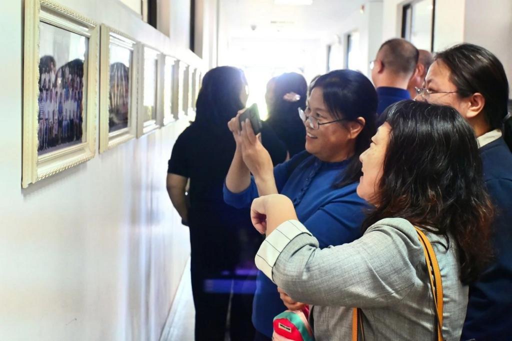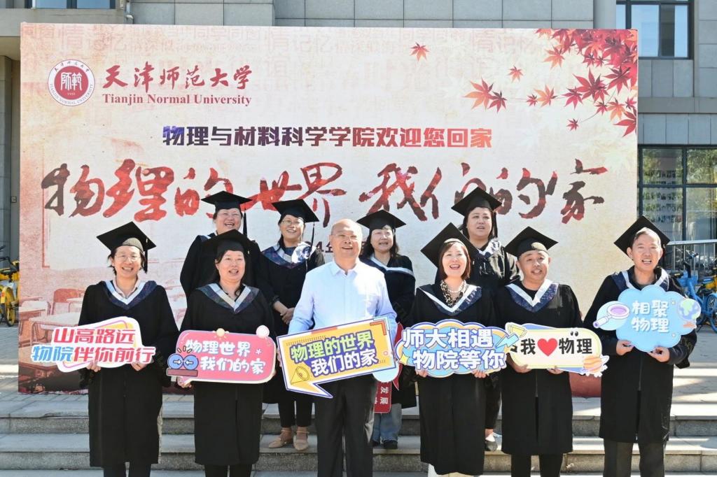 班会后,校友们饶有兴致地参观了天津市科普基地——科学体验馆、“繁星筑梦”德赢ac米兰官方合作首届科学家精神展和“循迹启航”德赢ac米兰官方合作物理科普成果展。与正在开展研学的中小学生亲切交流,在学院历届毕业生合影长廊追寻记忆,在明理楼前广场的校友毕业30年返校活动主题背景墙前合影留念。