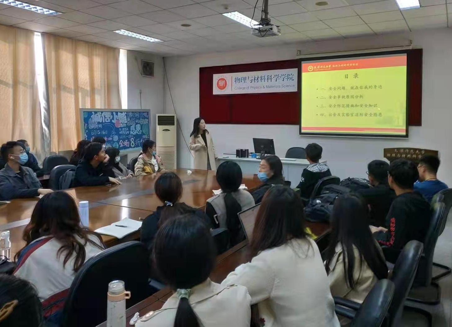 2021年10月22日,孙斌学长以学生的身份,结合自己两年来的亲身体会向新同学介绍了实验室安全工作,包括化学品使用安全、易燃易制爆危险化学物品的管理、气瓶管理、实验室安全防护、特种设备操作规程及各种仪器的使用维护的注意事项。